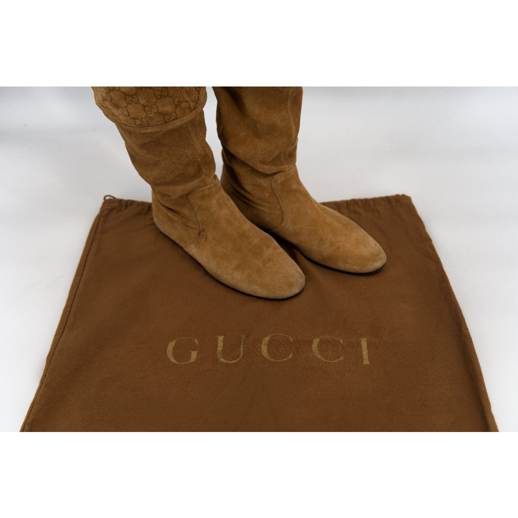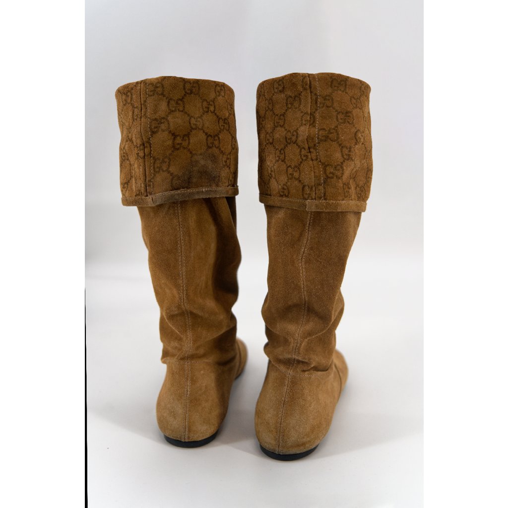 Gucci- vintage semišové jezdecké boty Camel Zaoblená špička
